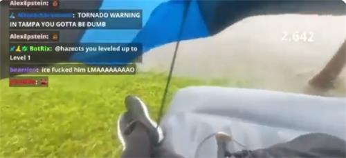 그는 강풍이 불고 폭우가 쏟아지는 호숫가에서 온라인 플랫폼 '킥'을 통해 라이브 방송을 켰고, 동시 시청자 수가 1만명을 넘으면 매트리스를 들고 물 안에 들어가겠다고 약속했다.