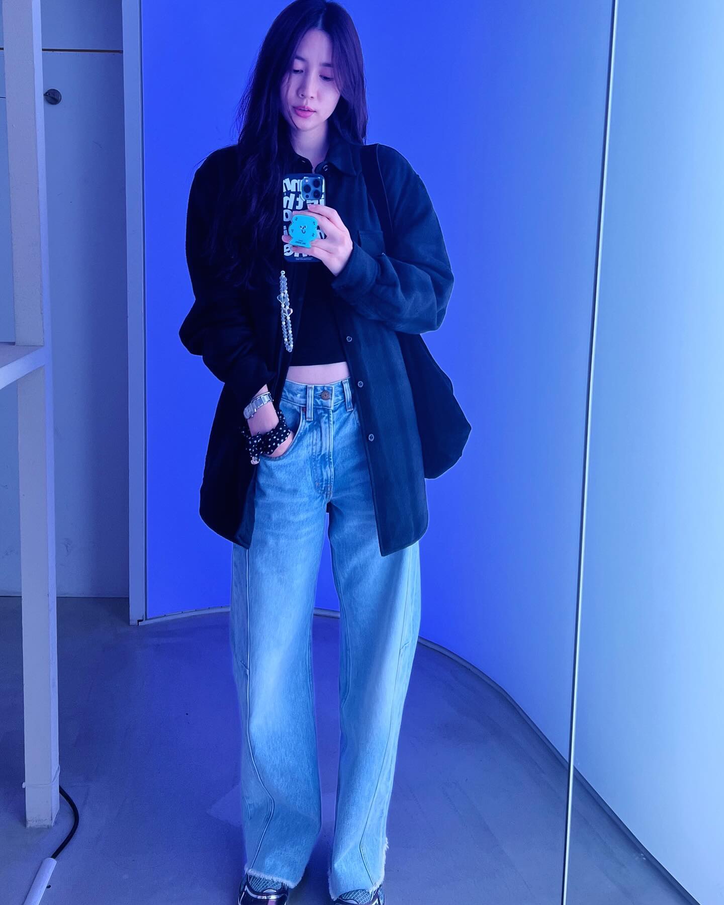 사진 속 진아름은 크롭톱에 와이드핏 청바지를 매치해 편안하면서도 스타일리시한 패션을 선보였다. 모델다운 174cm의 우월한 기럭지와 8등신 비율도 시선을 사로잡았다.