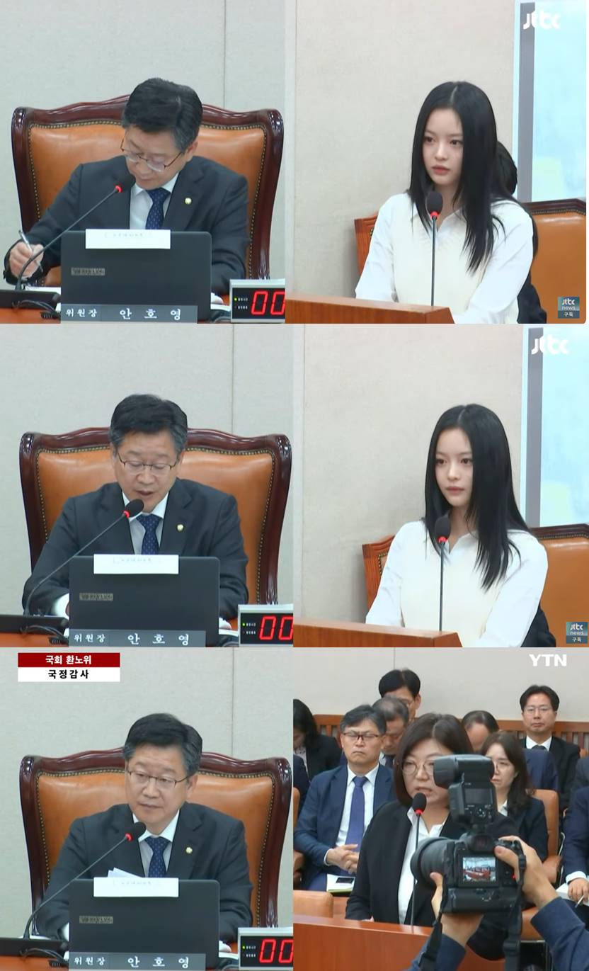 15일 국회 환경노동위원회(이하 '한노위')의 국정감사에 하니와 어도어 김주영 대표는 각각 참고인과 증인으로 출석했다.