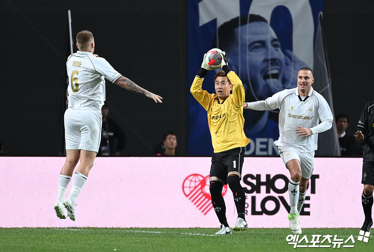 스포츠>세계 축구욘 아르네 리세 '어디 던져봐'[포토]엑스포츠뉴스입력 0 20일 오후 서울월드컵경기장에서 열린 '2024 넥슨 아이콘 매치' FC 스피어와 실드 유나이티드의 경기, FC 스피어 김병지와 실드 유나이티드 욘 아르네 리세가 장난을 치고 있다.