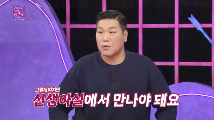 서장훈은 과거 없이 만나려면 "신생아실에서 만나야 한다" 말해 스튜디오를 웃음바다로 만든다.