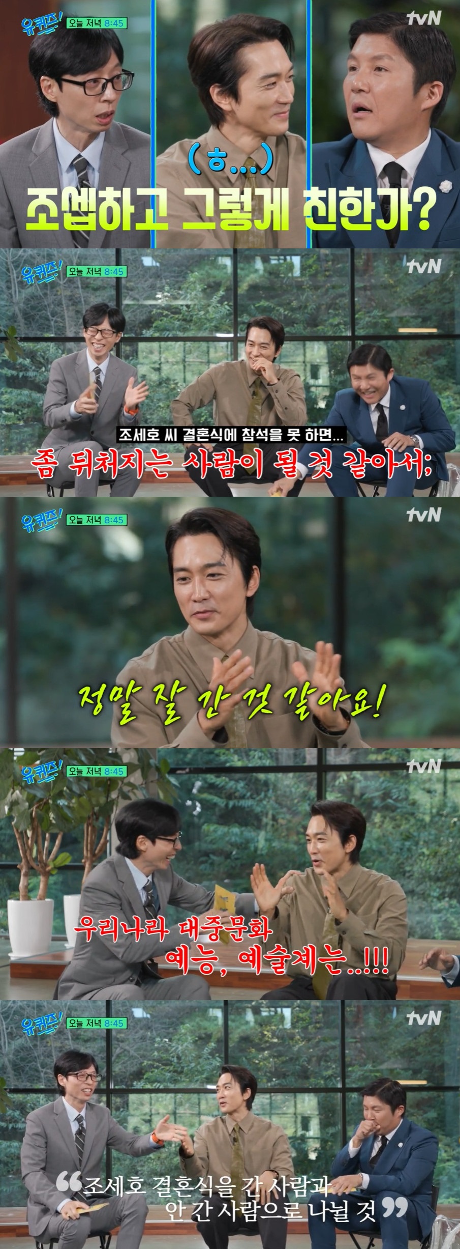 이어 송승헌은 "우리나라 대중문화 예능, 예술계는 앞으로 조세호 결혼식 간 사람과 안 간사람으로 기록될 거 같다"고 덧붙여 웃음을 안겼다.