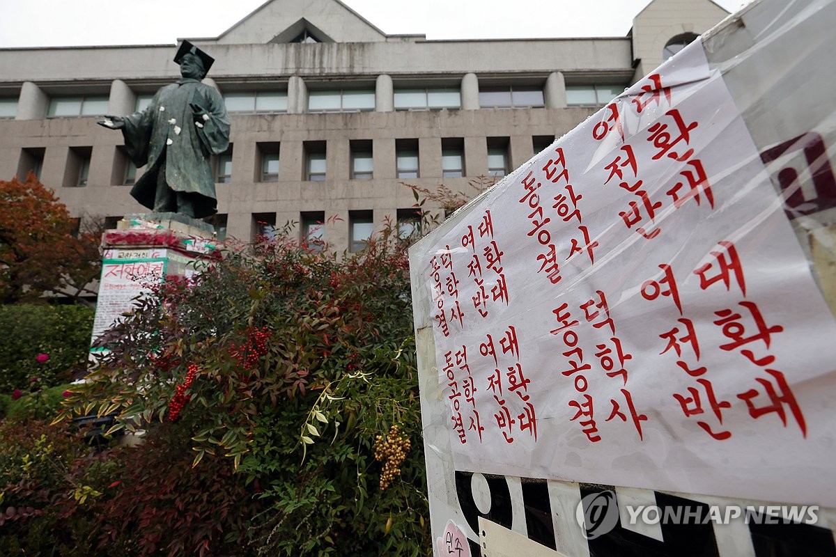 (서울=연합뉴스) 정윤주 이율립 기자 = 남녀공학 전환 논의설로 촉발된 동덕여대 학생들의 점거 농성이 닷새째 이어지고 있는 가운데, 학교 측이 학내 최대 54여억원의 피해 금액이 발생했다고 주장했다.