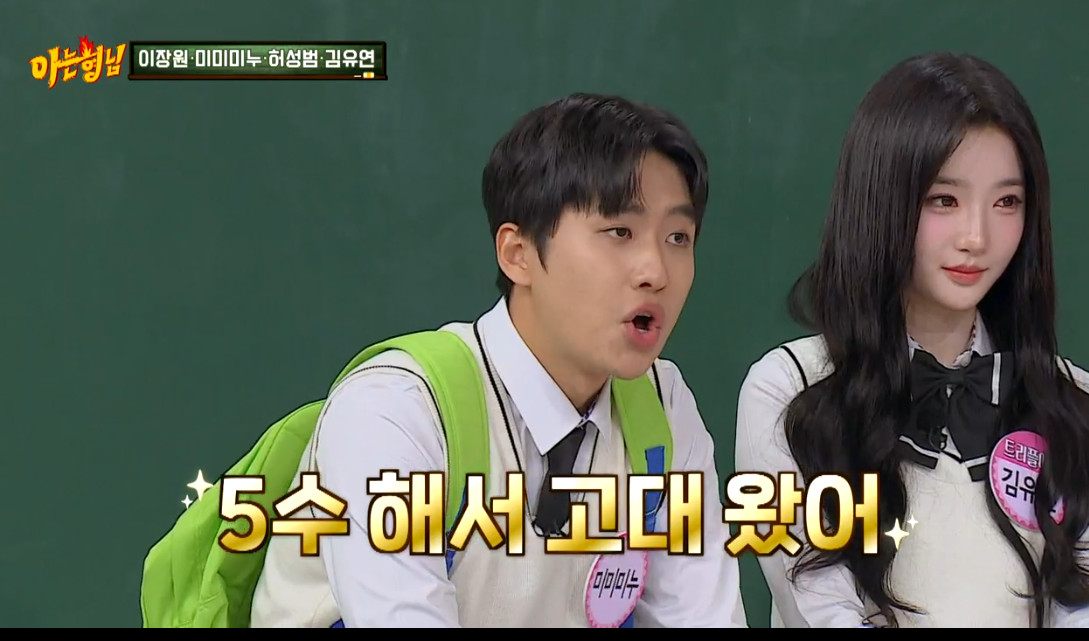 미미미누는 "5수해서 고대 왔어. 수능을 나는 5번을 봤어"라고 말했고, 서장훈은 "미안한데 5수를 해서 고대를 갔어?"라고 물었다.