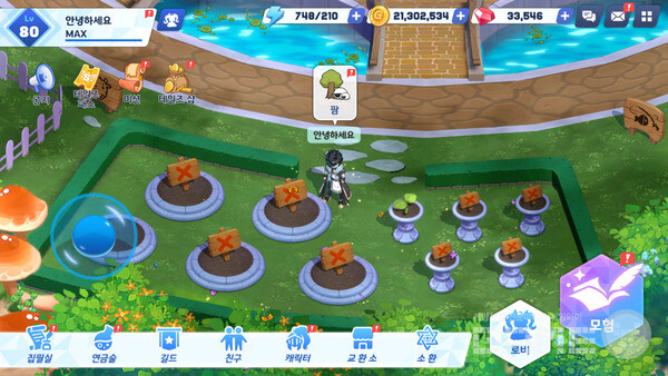 원작 테일즈런너의 광장을 재현한 하늘섬은 직접 캐릭터를 움직이면서 다른 작가들과 상호작용을 하거나 '팜', '낚시', '오락실' 등 다양한 생활 콘텐츠를 즐길 수 있는 공간이다.