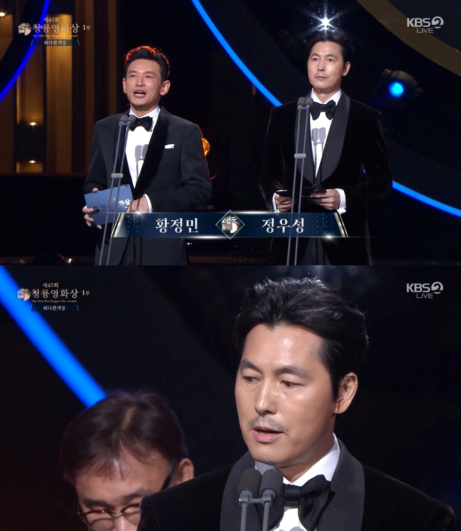 지난 29일 진행된 제45회 청룡영화상 당일까지도 침묵을 유지했던 정우성은 본 시상식에서 '최다관객상' 시상을 위해 무대에 올랐고, '서울의 봄'이 수상하면서 자연스럽게 마이크를 잡았다.