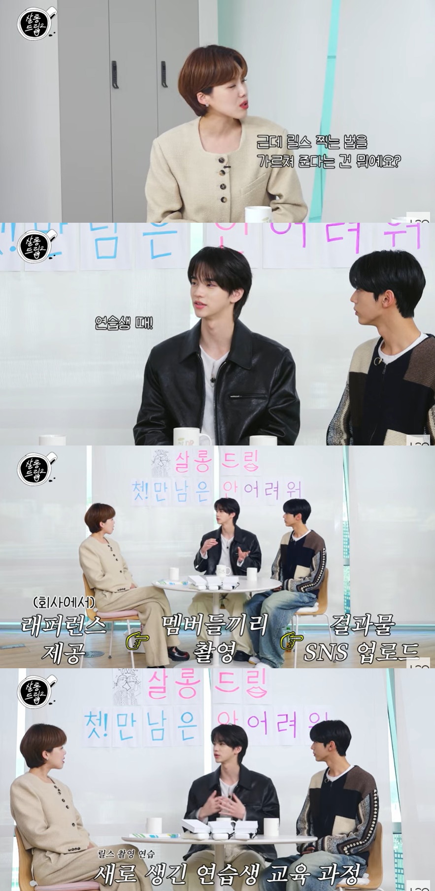 장도연은 "릴스 찍는 법을 가르쳐준다는 건 뭐냐"고 물었고, 신유는 "연습생 때 (회사에서) 레퍼런스를 주시면 제가 그거를 찍어서 SNS에 업로드했다"며 릴스 촬영 연습을 통해 점점 익숙해지도록 숙련하는 새로 도입된 연습생 교육 과정의 일환이라고 설명했다.