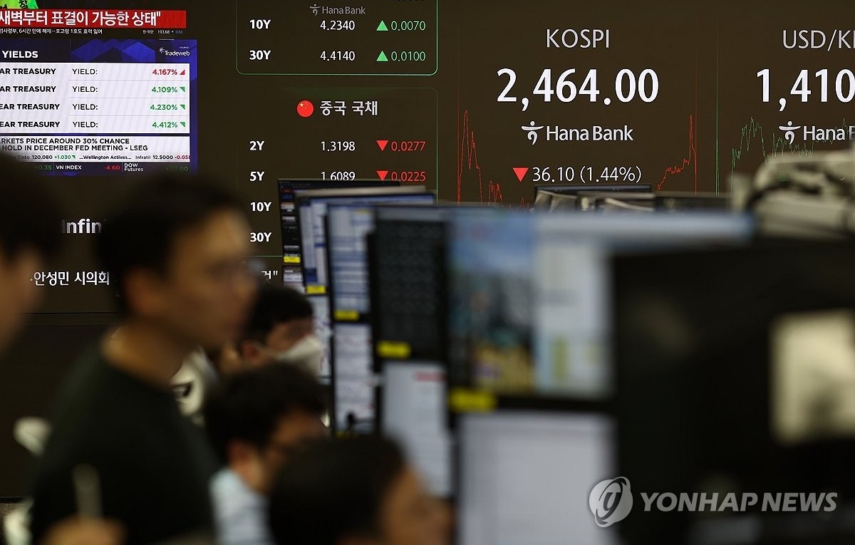 이날 코스피는 전 거래일 대비 36.10포인트(1.44%) 하락한 2,464.00으로 장을 마쳤다.