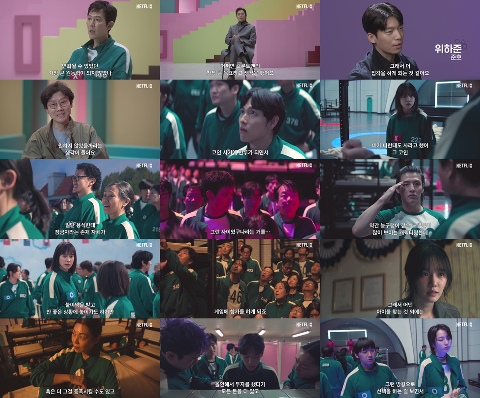 함께 공개된 '오징어 게임' 시즌2 캐릭터 소개 영상은 황동혁 감독과 배우들이, 자신이 생각한 캐릭터를 직접 소개해 '오징어 게임' 시즌2에 대한 궁금증에 가장 생생한 답을 보여준다. 기훈 역의 이정재는 "본인이 반드시 바꿔야만 한다라는 목적성이 가장 강했던 것 같다. 그러다 보니까 기훈이 시즌1에 비해서 변화될 수 있었던 가장 큰 원동력이 되지 않았나 생각한다"라고 전해 시즌1과 180도 달라진 기훈을 짐작하게 했다.