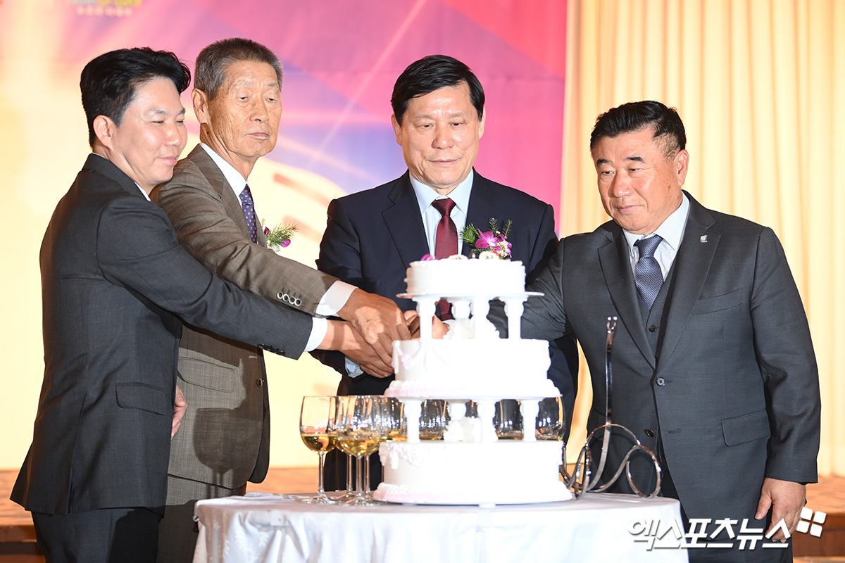 스포츠>한국 야구2024 일구상 시상식, 성공적인 마무리[포토]엑스포츠뉴스입력 0 (엑스포츠뉴스 청담, 고아라 기자) 10일 오전 서울 강남구 호텔리베라 베르사이유홀에서 '2024 뉴트리디데이 일구상' 시상식이 열렸다. 이날 시상식에 참석한 김형대 뉴트리디데이 대표, 김성근 전 감독, 허구연 KBO 총재, 김광수 일구회장이 케이크 커팅을 하고 있다.고아라 기자 iknow@xportsnews.com