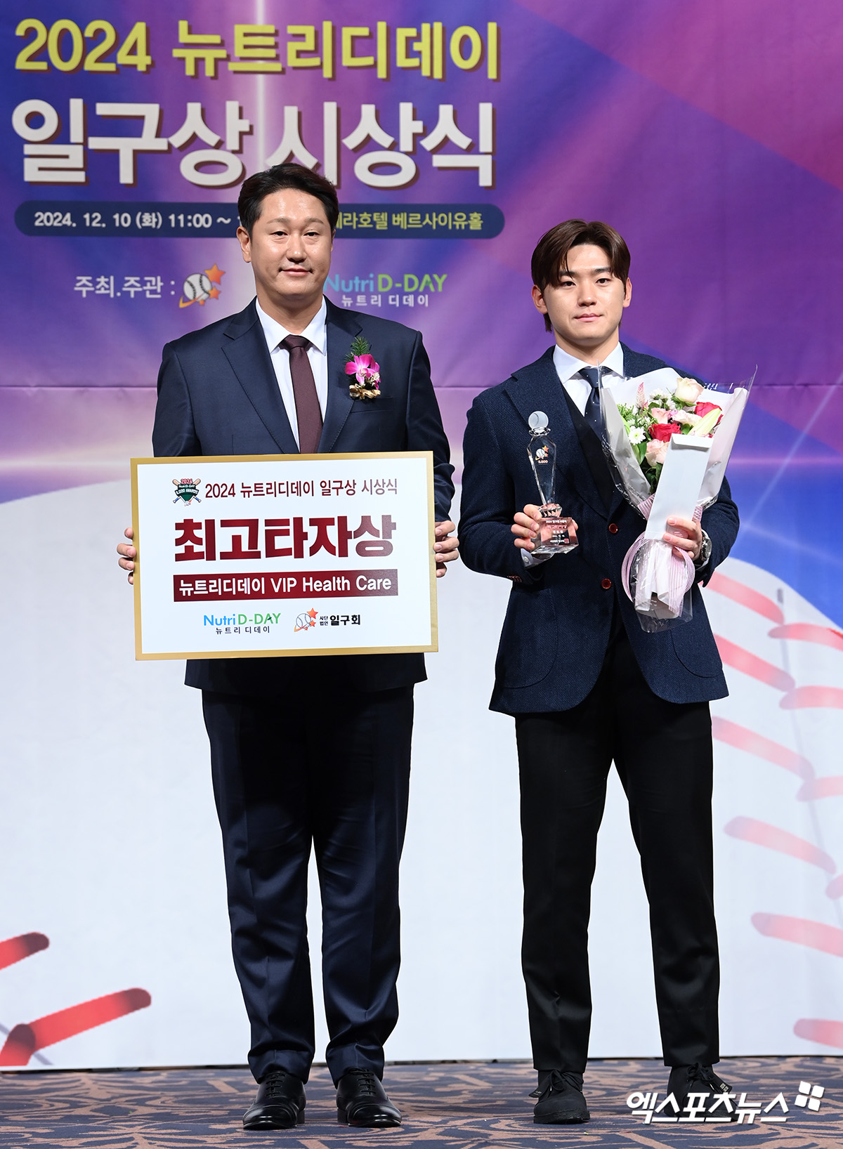 스포츠>한국 야구'최고타자상' 김도영, 선배 이대호 옆에서 나란히[포토]엑스포츠뉴스입력 0 (엑스포츠뉴스 청담, 고아라 기자) 10일 오전 서울 강남구 호텔리베라 베르사이유홀에서 '2024 뉴트리디데이 일구상' 시상식이 열렸다. 이날 시상식에 참석해 최고타자상을 수상한 KIA 김도영이 기념촬영을 하고 있다.고아라 기자 iknow@xportsnews.com