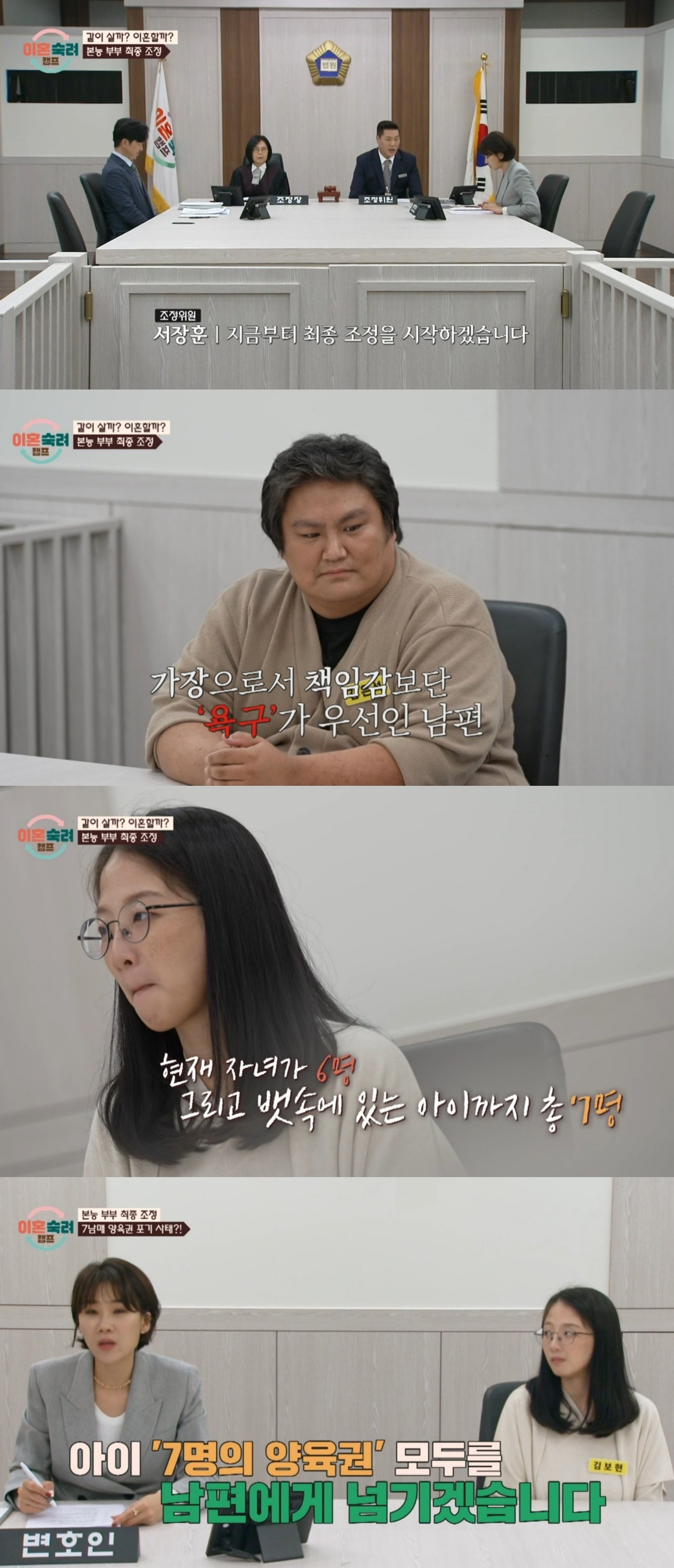 재산분할보다는 곧 7명이 되는 자녀의 양육권이 문제되는 상황, 아내의 뜻에 따르겠다는 남편의 의견에 아내 측은 7명의 양육권을 모두 남편에게 넘기겠다고 선언했다.