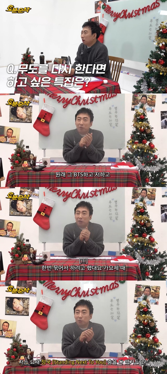 '무한도전'을 다시 하게 된다면 하고 싶은 특집이 있냐는 말에는 "김태호 PD를 통해서 들었는데, 원래 가요제 때 방탄소년단(BTS)이랑 저랑 묶어서 하려고 했다더라"며 "(유)재석이가 엑소(EXO)랑 하지 않았나. (김태호 PD가) 저는 BTS를 망쳐놓을까봐 안 했다고 하는데, 요새 정국의 'Standing Next To You' 춤을 다 뗐다"고 자신있는 모습을 보여줬다.
