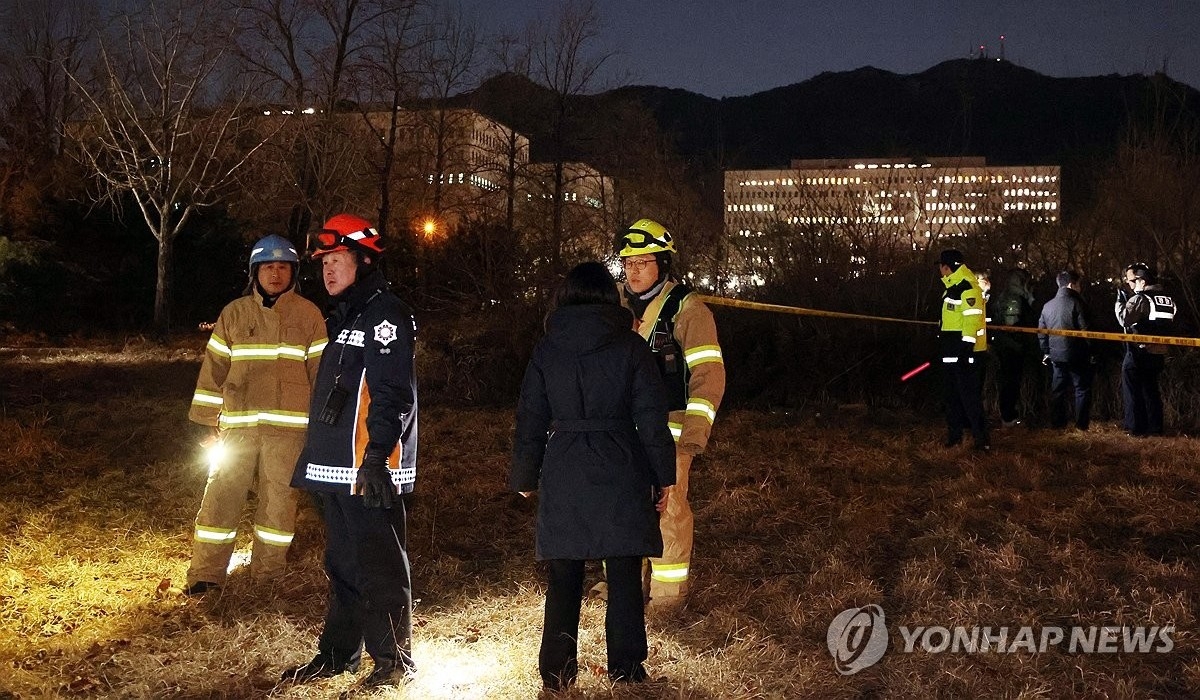 (과천=연합뉴스) 권준우 기자 = 윤석열 대통령에 대한 체포영장이 집행된 15일 고위공직자범죄수사처(공수처)가 있는 경기 과천시 정부과천청사 부근에서 남성 1명이 분신을 시도했다.