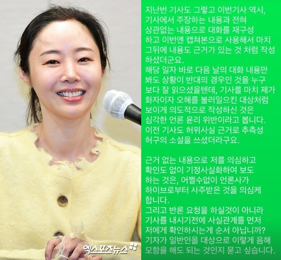 조선비즈의 해당 보도 이후 민희진은 개인 SNS에 기자와 나눈 문자 메시지 내용을 공개하며 반박에 나섰다.