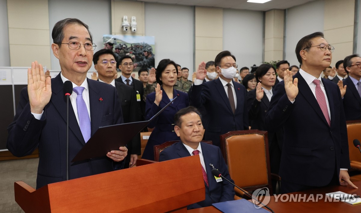 (서울=연합뉴스) 한혜원 기자 = 국회 '윤석열 정부의 비상계엄 선포를 통한 내란 혐의 진상규명 국정조사 특별위원회'는 22일 한덕수 국무총리와 관계 국무위원 등이 참석한 가운데 1차 청문회를 실시했다.