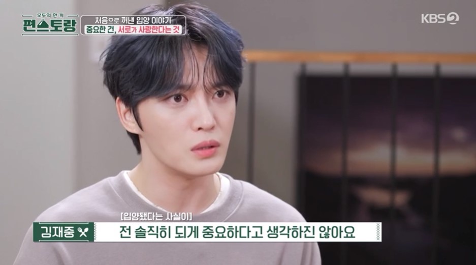 김재중은 "제가 입양아라는 사실을 데뷔 후에 알게 됐다. 전 솔직히 (입양 됐다는 게) 중요하다고 생각하진 않는다. 현재가 더 중요하다"고 말했다.