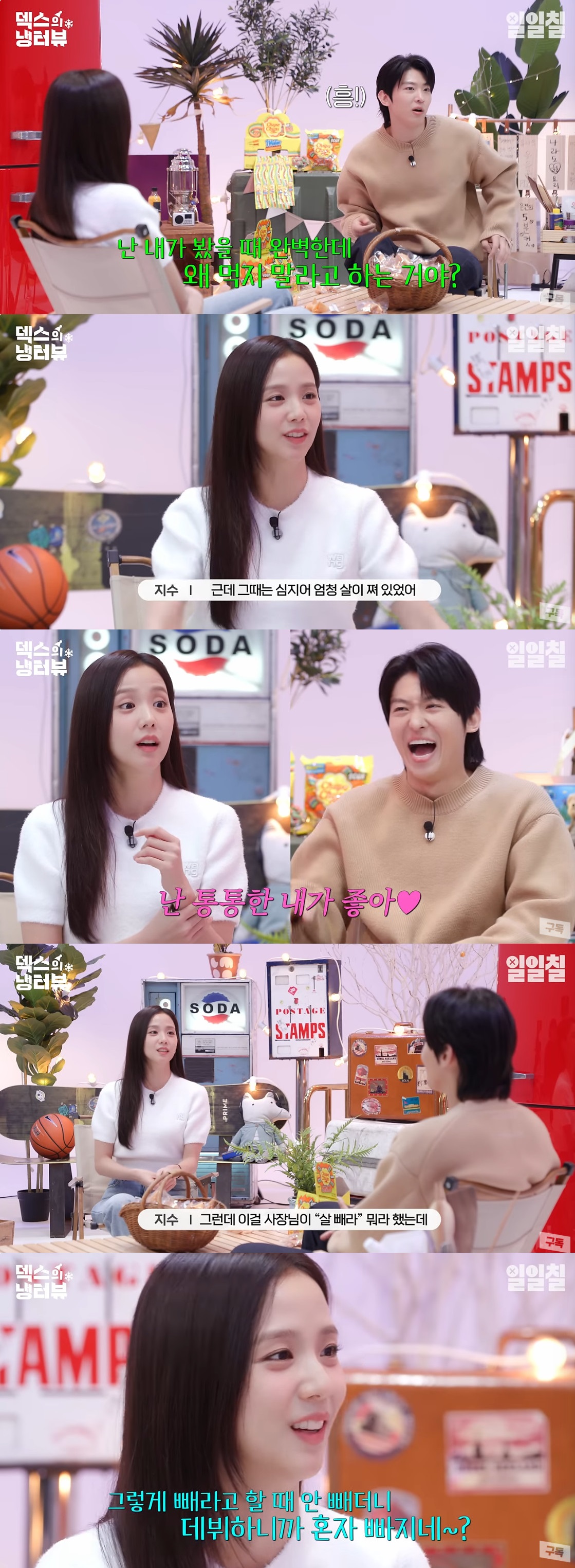 이에 덱스는 "자연스럽게 자기관리가 되겠다"고 이야기했고, 지수는 "그래서 다행이다. 먹는 거 좋아해서 살도 잘 찌고 잘 뺀다"라고 고백했다.