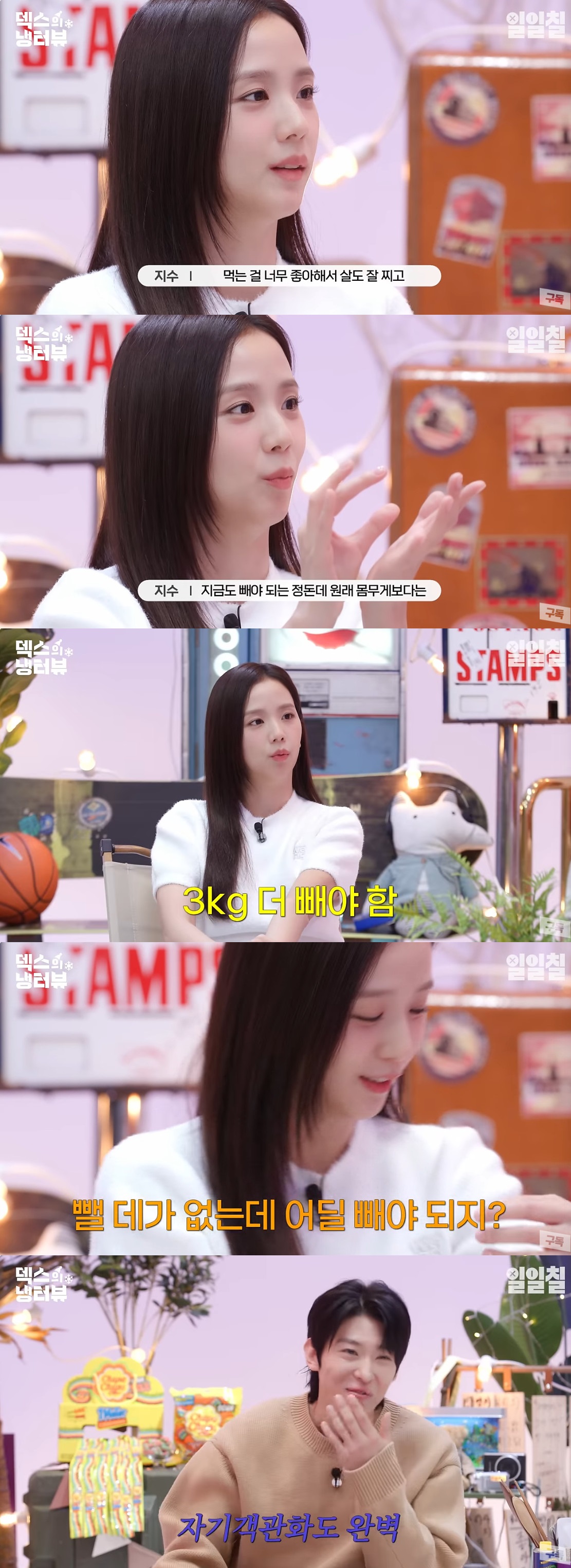 덱스는 "그런 말 하지 마라. 거의 이쑤시개다"라며 지수를 걱정했고, 지수 또한 "지금도 원래 몸무게가 되려면 빼야 하는 정도다. 3kg 더 빼야 한다. 그래서 나도 항상 '뺄 곳이 없는데 어딜 빼야 하지?'한다"고 솔직히 덧붙였다.