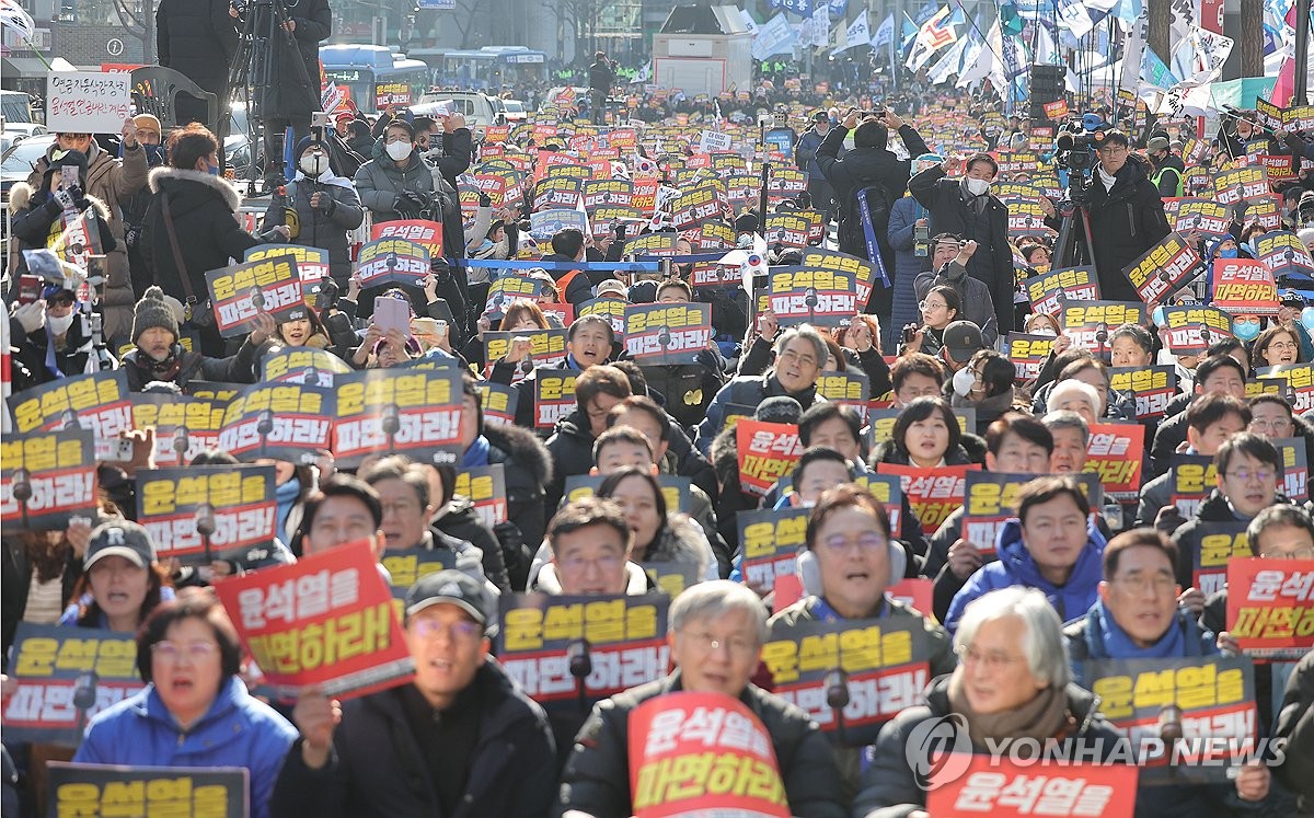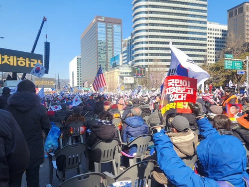 (서울=연합뉴스) 이율립 기자 = 윤석열 대통령의 헌법재판소 탄핵심판 마지막 변론기일을 사흘 앞둔 주말인 22일 탄핵 찬반 양측이 서울 도심 곳곳에서 대규모 집회를 열었다.