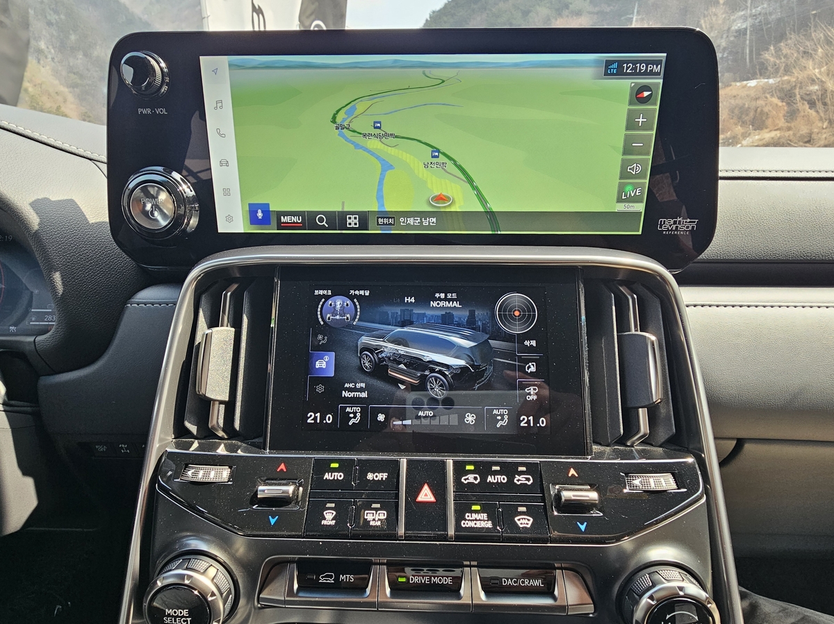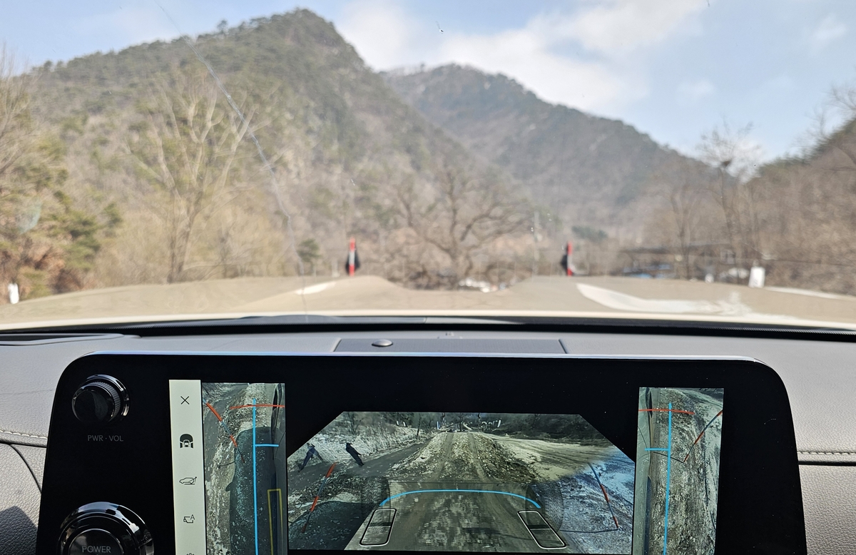 경사로를 올라가며 전방이 제대로 보이지 않을 때는 멀티 터레인 모니터(MTM)가 유용했다. 전후좌우에 하나씩 총 4개의 카메라 영상이 12.3인치 디스플레이에 펼쳐지며 마치 차체가 투명해진 것처럼 주변을 시원하게 보여줬다.