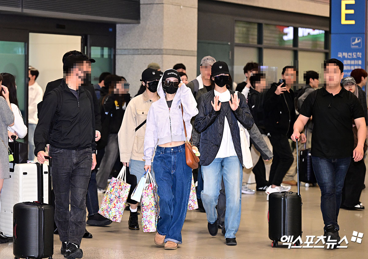 이날 멤버들은 민낯에 볼캡과 마스크를 착용하고 입국장에 등장했다.