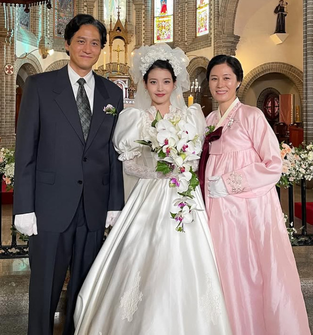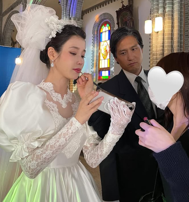 공개된 사진 속 아이유는 드라마 속 금명이(아이유 분)가 결혼하는 사진이 담겼다. 웨딩 드레스를 입은 채 아름다운 미모를 드러내고 있다. 또한 어린 금명이, 애순이와 관식이. 시어머니, 은명이 등 가족들과 함께 인증샷을 남기고 있는 모습이다.