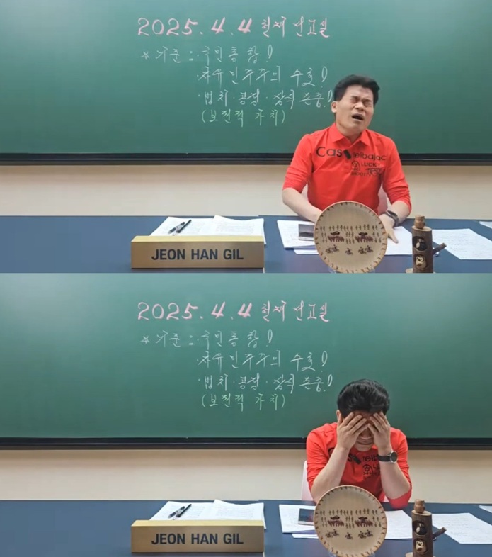 넷플릭스 '폭싹 속았수다'에서 통편집돼 화제가 된 한국사 강사 전한길은 실시간 방송을 통해 파면 선고에 당혹감을 드러내기도 했다. 전한길은 "정말 안타깝다. 제가 예상하기를 당연히 4대 4 기각되고 직무 복귀할 것을 생각하고 있었는데 뜻밖의 상황이 일어나고 있다"고 탄식하다 이내 책상을 세게 내려치며 머리를 감싸쥐었다.