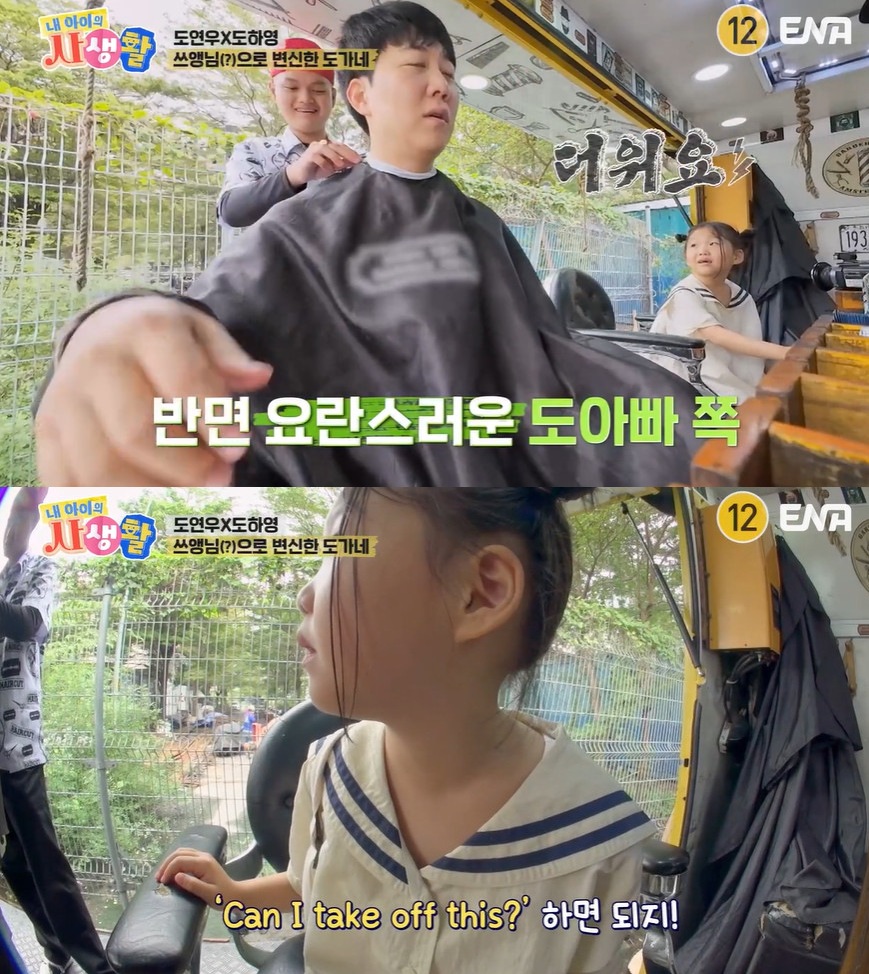 6일 방송된 ENA '내 아이의 사생활'(이하 '내생활') 15회에서 도경완이 도연우-도하영 남매와 트럭 바버샵으로 향했다.