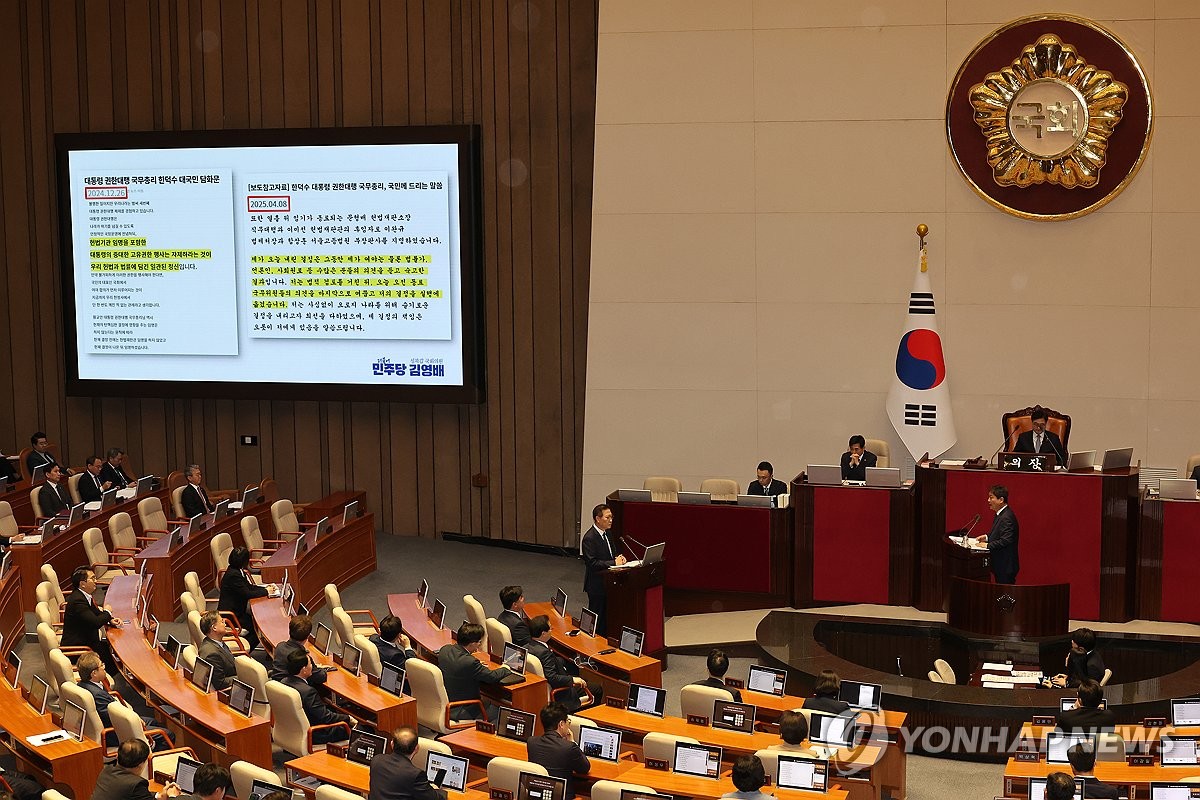 (서울=연합뉴스) 김치연 조다운 기자 = 더불어민주당과 국민의힘은 14일 정치·외교·통일·안보 분야 국회 대정부질문에서 한덕수 대통령 권한대행 국무총리의 헌법재판관 후보자 지명을 포함한 권한 범위를 놓고 공방을 벌였다.
