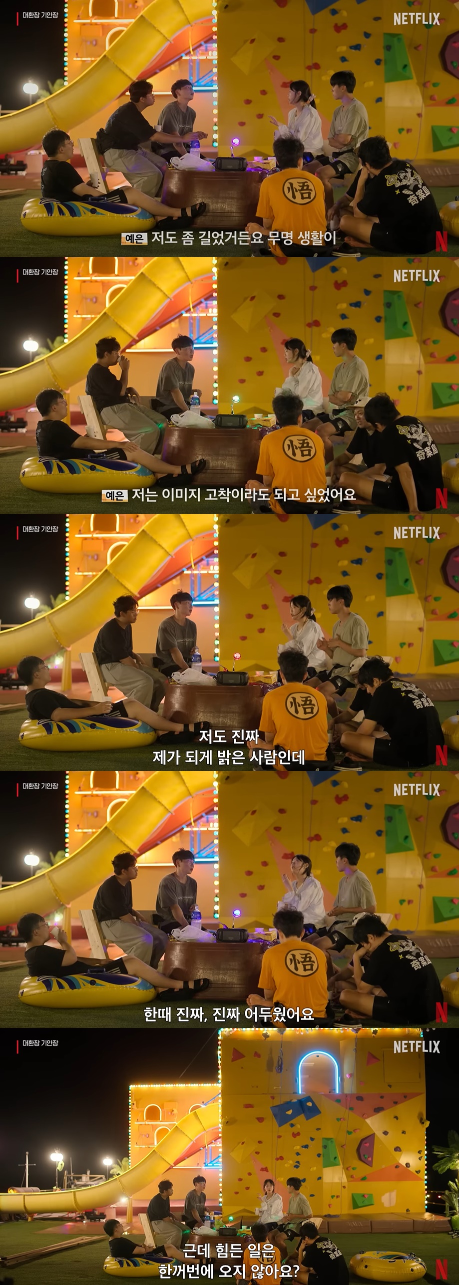 한 숙박객은 지예은에게 "코미디 연기로 확 이슈가 됐다. 코미디 연기로 이미지가 고착화 되는 두려움은 없냐"고 질문했고, 지예은은 이에 대해 "전 웃기고 싶었다. 남들이 저 보고 웃는 게 너무 좋았다. 그래서 '나는 꼭 코미디 연기를 해야지' 생각했다"라고 답했다.