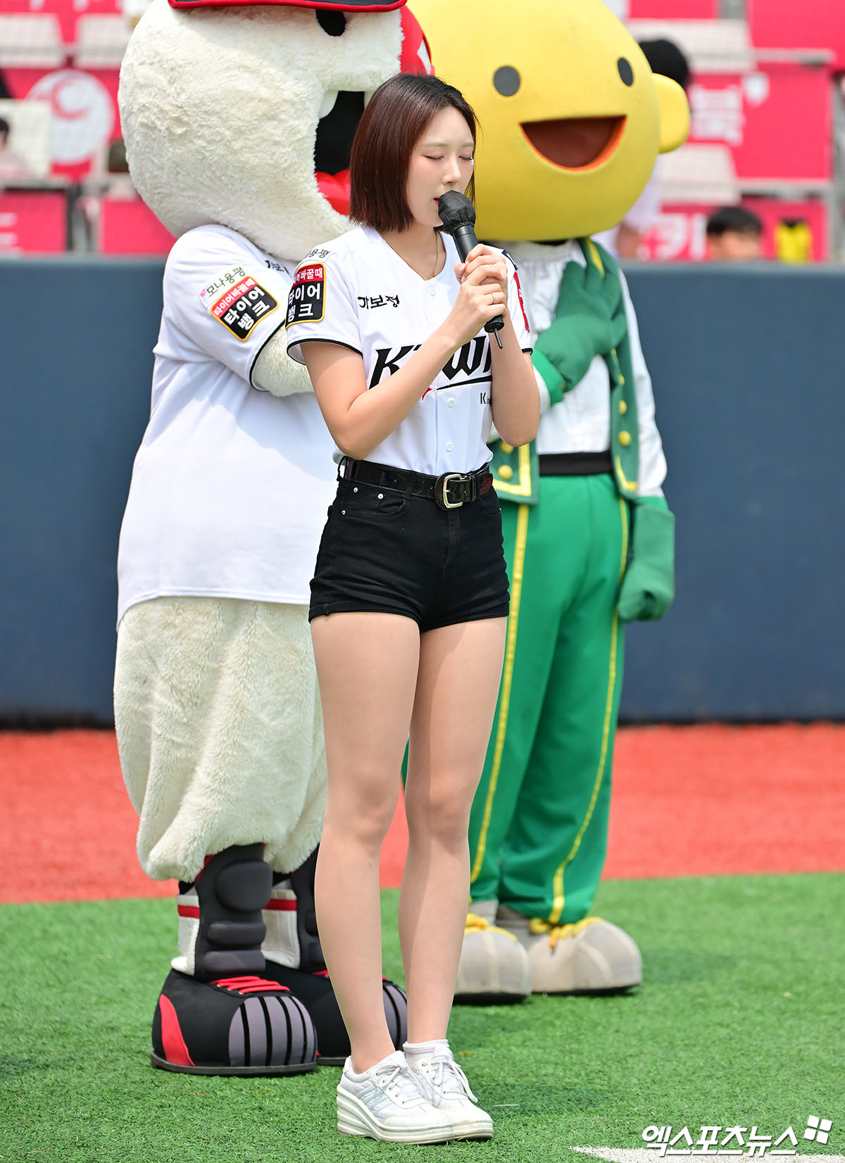 스포츠>한국 야구이금주 치어리더 '떨리는 마음으로'[포토]엑스포츠뉴스입력 0 31일 오후 수원KT위즈파크에서 열린 '2025 신한 SOL Bank KBO리그' KIA 타이거즈와 KT 위즈의 경기, 이금주 치어리더가 애국가를 제창하고 있다.