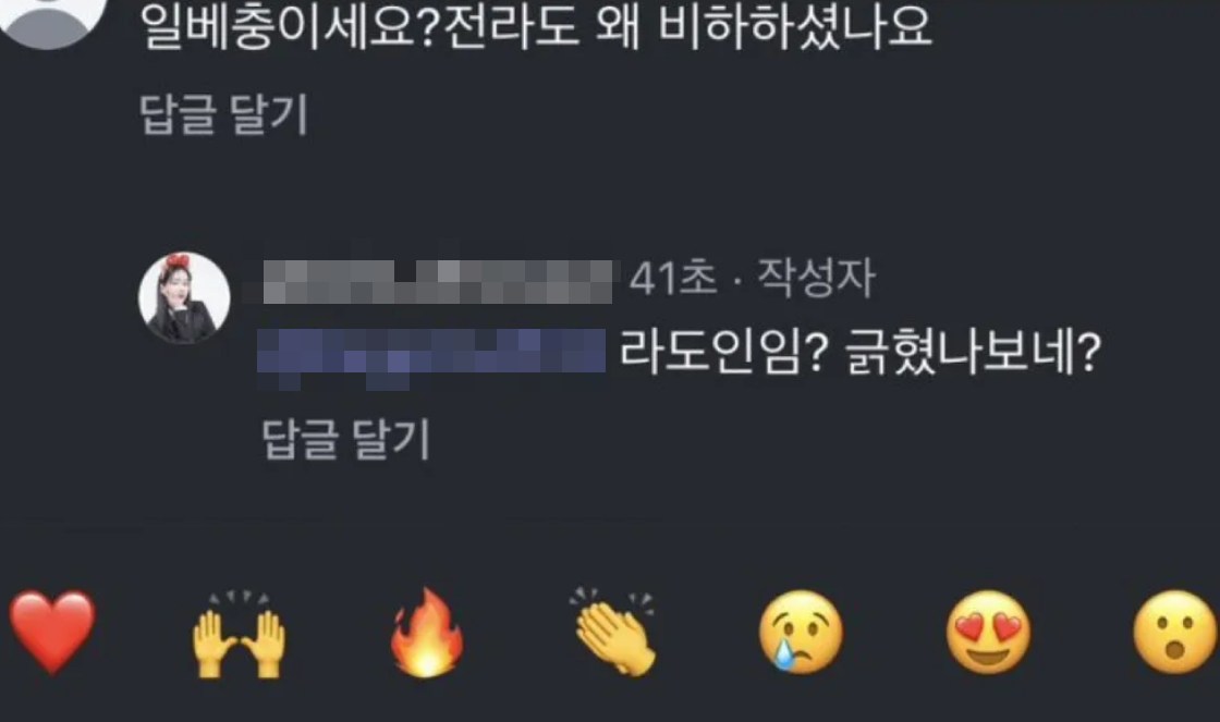 지역 비하를 지적하는 누리꾼에게 잡식공룡은 "전라도인임? 긁혔나 보네"라고 응수해 더욱 논란이 커졌다.