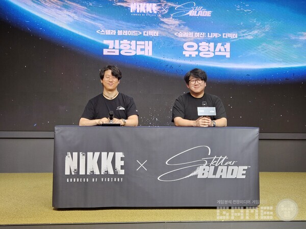 이날 자리에는 시프트업의 대표이자 ‘스텔라 블레이드’의 디렉터인 김형태 대표와 ‘승리의 여신: 니케’의 유형석 디렉터가 참석했다.