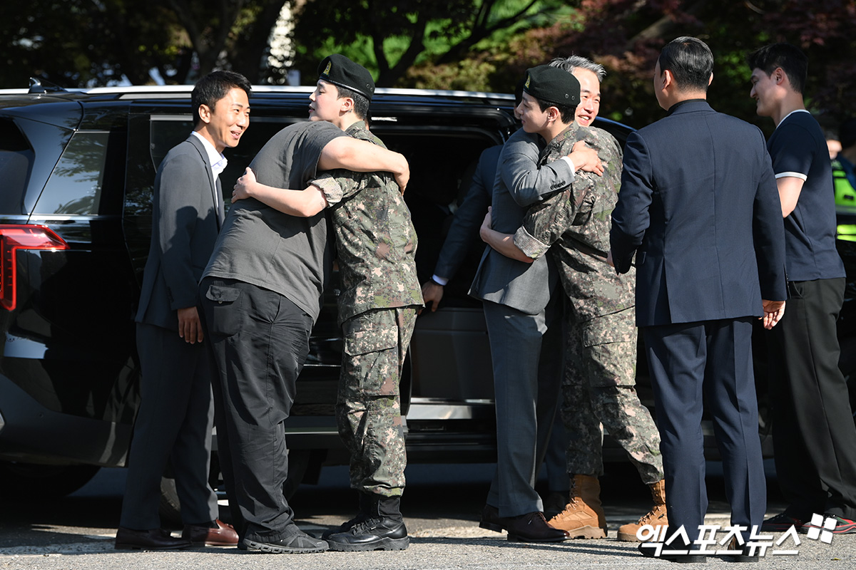 BTS 지민-정국 '관계자들과 전역 감격의 포옹'[엑's HD포토]