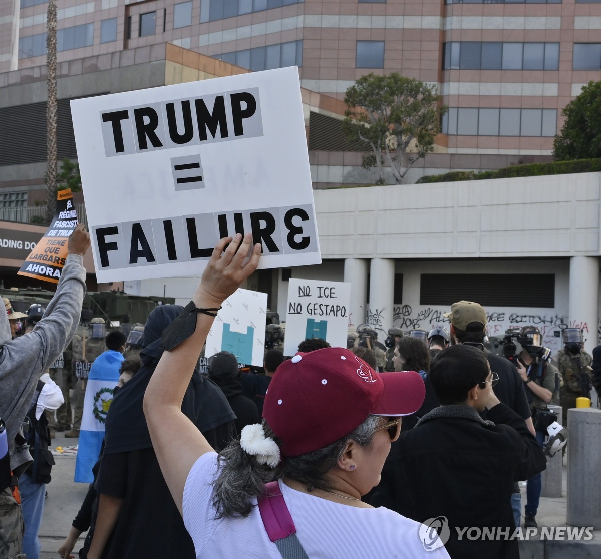 (샌프란시스코=연합뉴스) 김태종 특파원 = 미국 로스앤젤레스(LA)에서 도널드 트럼프 행정부의 불법 이민자 단속에 반발하는 시위가 8일째 이어지는 가운데 13일(현지시간) 미 해병대 병력이 현장에 투입됐다. 민간인도 구금했다.