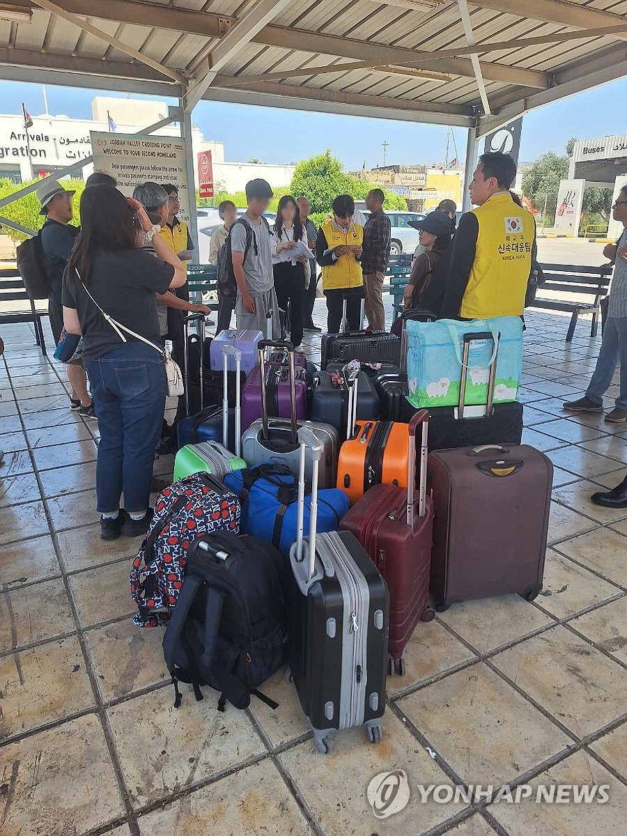 이란에 이어 이스라엘에서도 우리 국민 25명 및 이스라엘 국적 가족 1명이 19일 오전 우리 정부가 제공한 교통편을 통해 육로로 요르단에 무사히 도착했다.