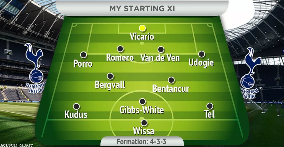 매체가 예상한 토트넘의 새로운 베스트 11은 4-2-3-1 전형이었다. 굴리엘모 비카리오가 골문을 지키고, 페드로 포로, 크리스티안 로레모, 미키 판더펜, 데스트니 우도기가 백4를 구성한다. 3선은 로드리고 벤탄쿠르와 루카스 베리발이 맡는다.