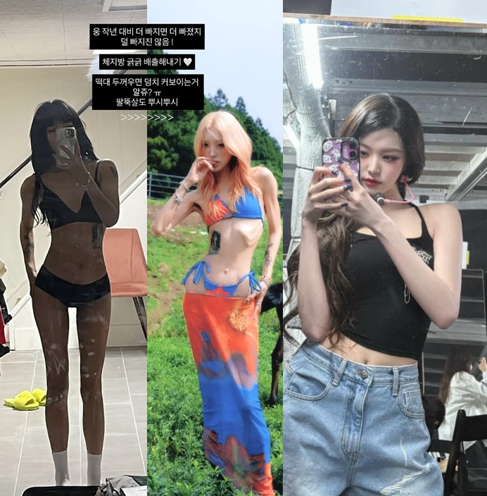 최준희는 "작년 대비 더 빠지면 더 빠졌지 덜 빠지진 않음!"이라는 글과 함께 자신의 비키니 사진을 게재했다.
