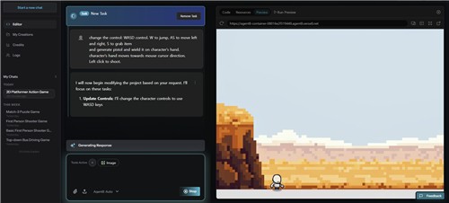 코드 작성은 물론, 게임에 등장하는 캐릭터나 사물, 소리까지 AI가 자동으로 생성해 게임에 넣어준다.