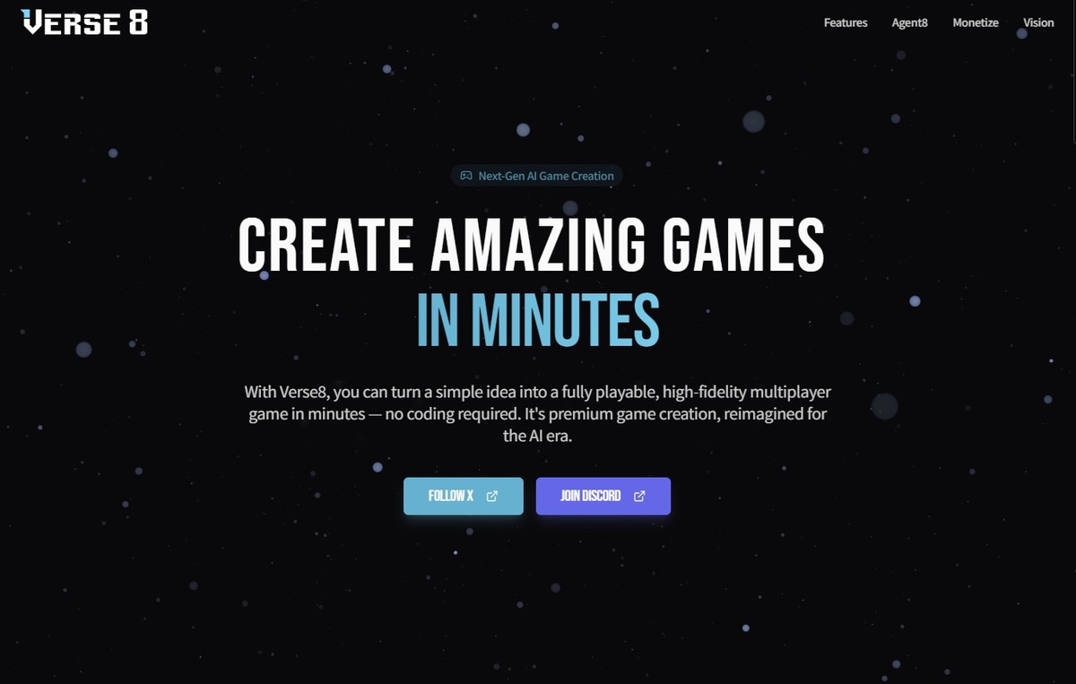 국내 기업 플라네타리움랩스가 미국 소재 자회사를 통해 개발·운영하는 AI 기반 게임 창작 플랫폼 'Verse8(버스8)'이다.